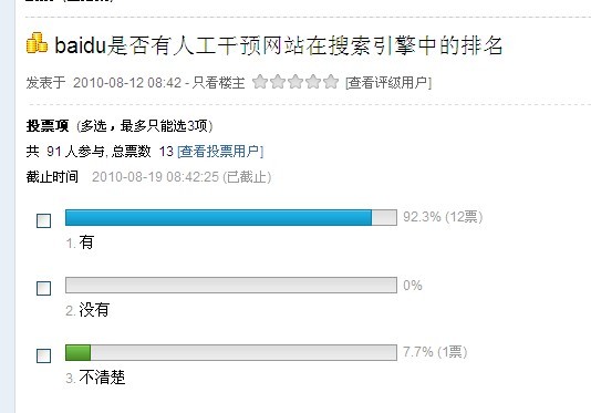 通過(guò)站長(zhǎng)站進(jìn)行調(diào)查Baidu是否有人工干預(yù),得到答案99%具有人工干預(yù)。圖表如下。