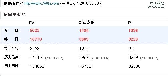 嬌艷女性網(wǎng)做了1個多月,現(xiàn)在IP已經(jīng)3000多了,這個行業(yè),3000多IP已經(jīng)是很不錯的了,呵呵,就說到這里了吧,可能文章有不通順和錯別字,希望大家轉(zhuǎn)載時幫忙修改一下。